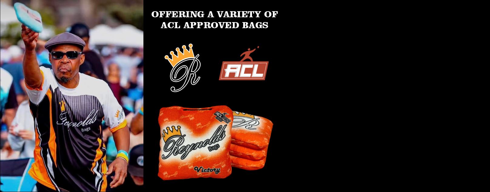 Our ACL Approved Bags include multiple different types of situational Cornhole bags to perfect your game. These bags are ACL Competition ready!